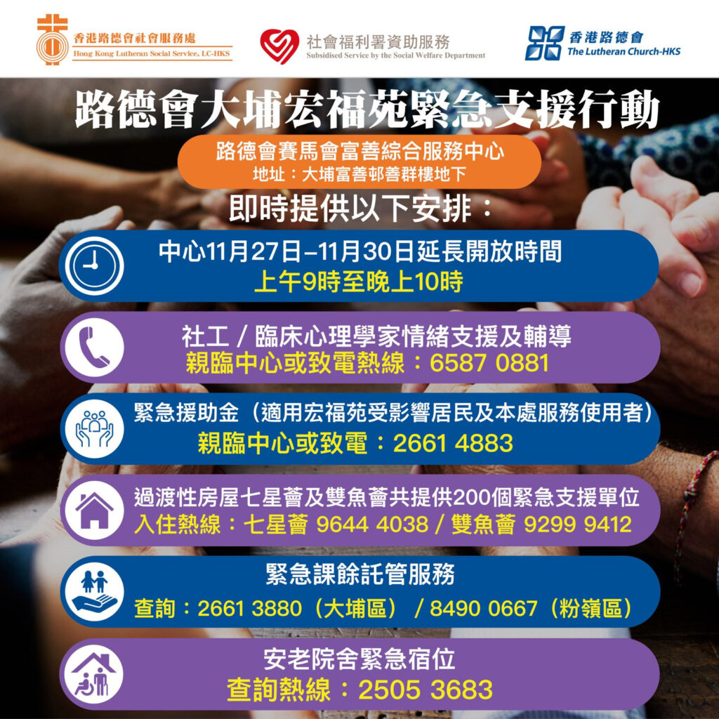 烈火無常,人間有愛,香港路德會社會服務處緊急調配機構資源,為宏福苑居民及受影響市民提供緊急援助