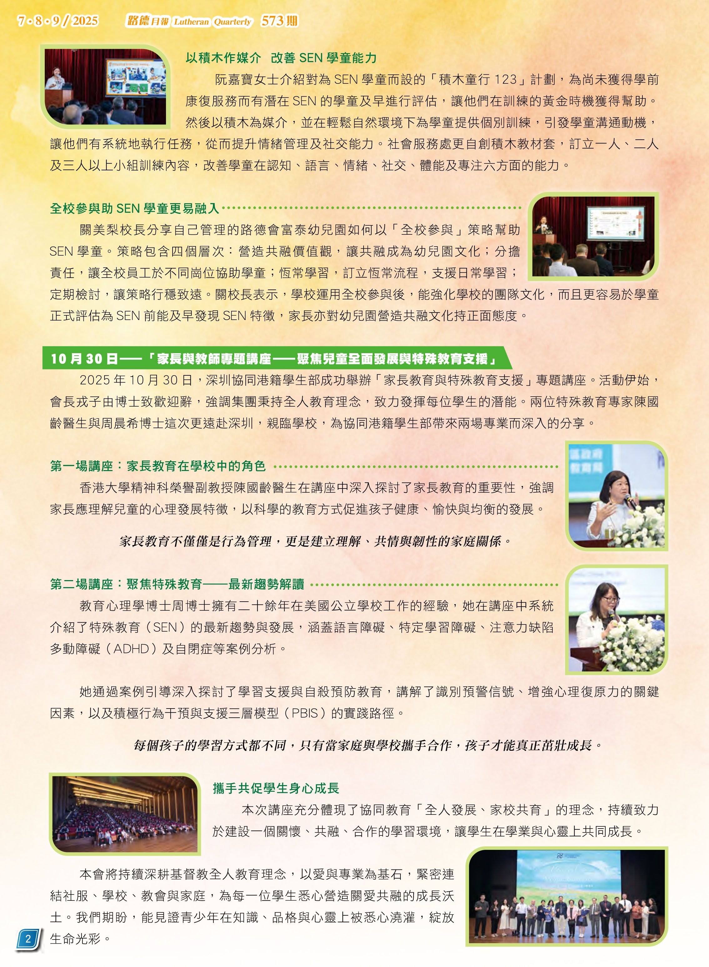 2024年12月16日,深圳協同港籍學生部舉行冬季音樂會,學校音樂團獻奏獻唱多首古今中外的世界名曲,當中我們可以聽到18世紀路德會音樂家巴哈(Johann Bach)的聖母頌(Magnificat)和許些聖誕歌,節日聖樂揚溢整個會場。