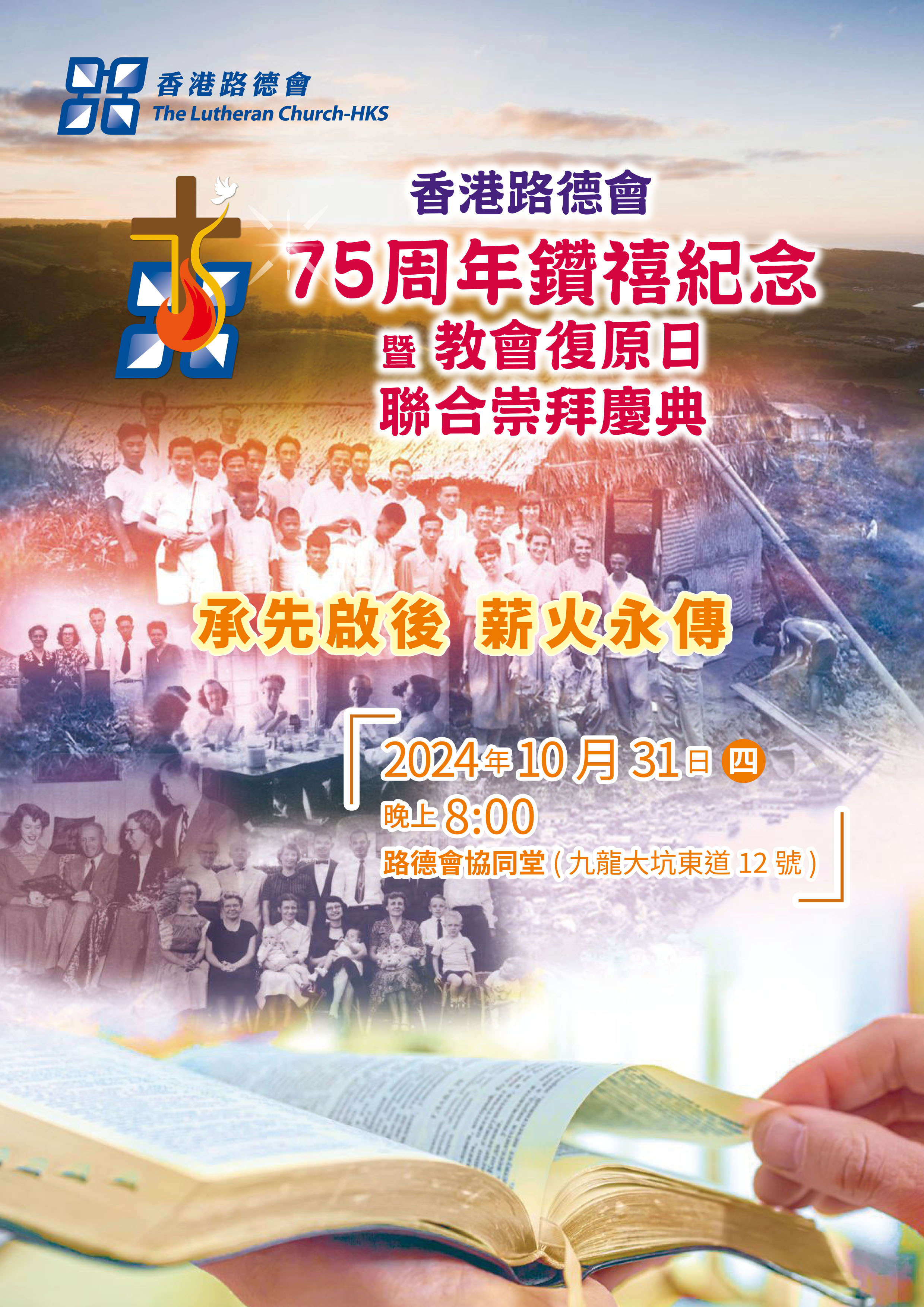 On the evening of 31 October 2024, the 75th Anniversary of the LCHKS cum Reformation Day Joint Worship took place in Concordia Lutheran School (Kowloon). Brothers and sisters from the LCHKS congregations, schools and social service gathered to glorify, praise and thank God.